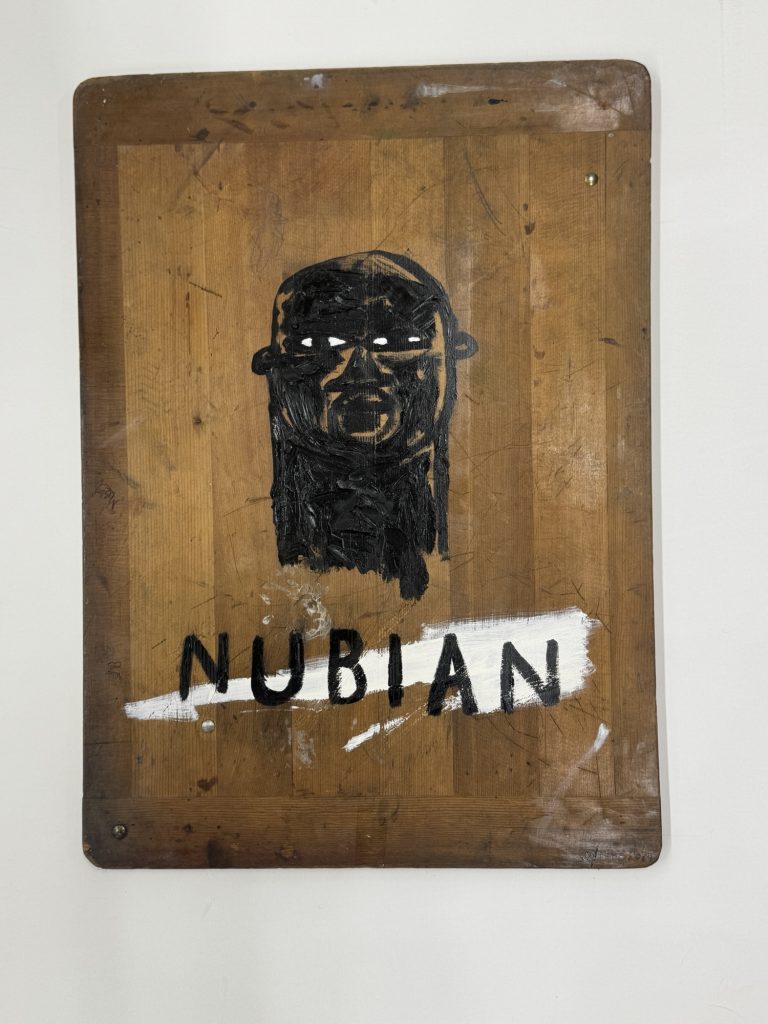 “Nubian” emerged from a series of portraits painted directly onto those reclaimed boards. Each surface carried its own history scratched names, marks of wear, layers of patina, and fragments of crude graffiti transforming every board into a unique artifact. Rather than concealing these traces, I allowed them to become part of the work, integrating the physical memory of the material into the painted image. In this way, the boards themselves became collaborators in the portraits, their scars and stories lending depth, texture, and emotional resonance to each piece.